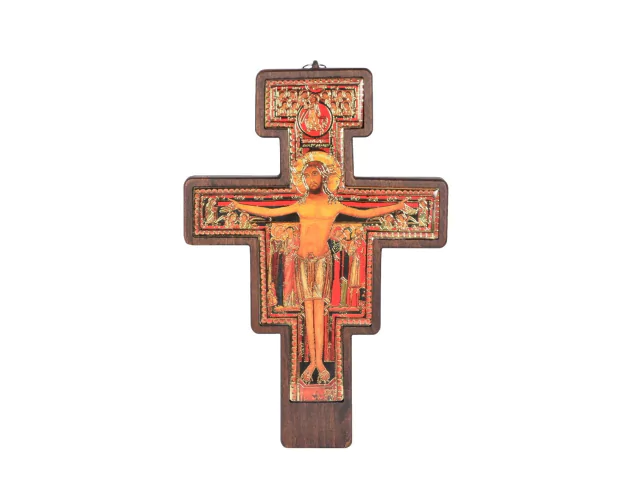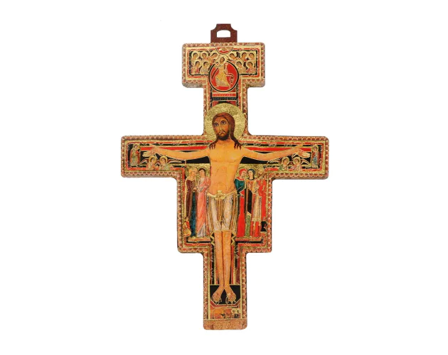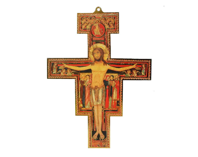 Krzyż z San Damiano to ikona typu „Chrystus chwalebny”, która powstała w dwunastym stuleciu w Umbrii. Nie jest to zwykły kawałek drewna, lecz precyzyjnie wykonane dzieło sztuki sakralnej. Nieznany artysta namalował ten wizerunek na desce orzechowej, na którą wcześniej naklejono cienkie płótno.