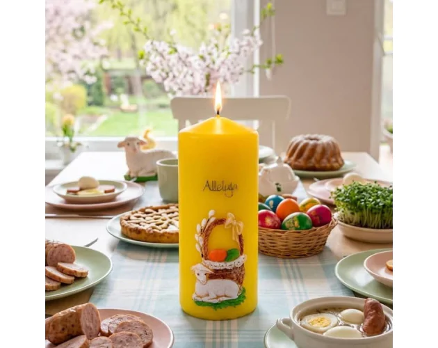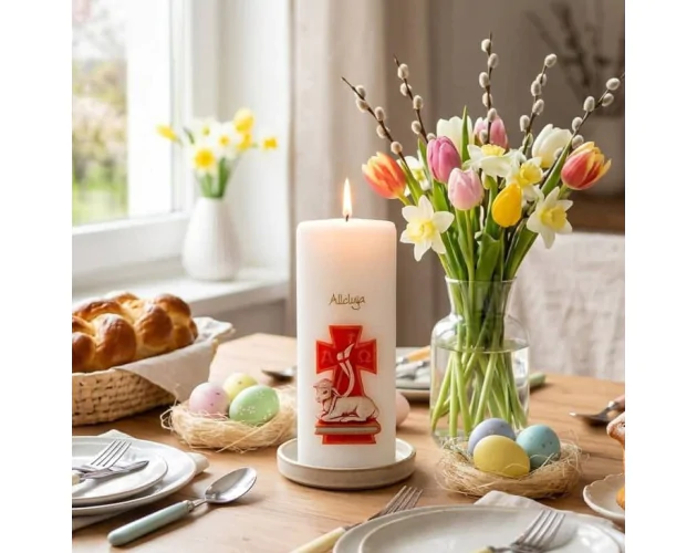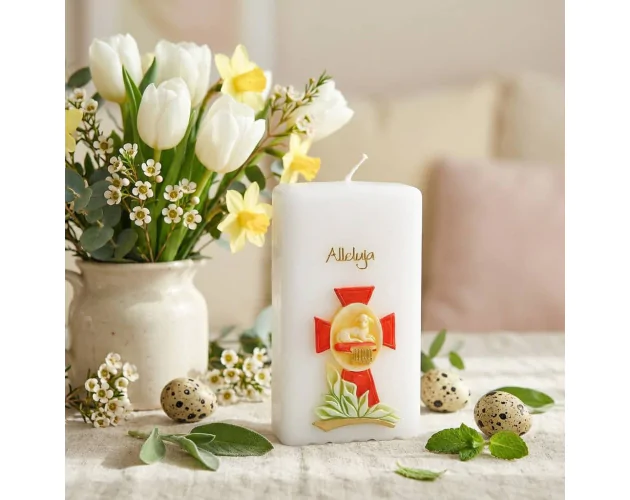 Woskowy paschalik – bardzo poręczny, trwały i pięknie pachnący. Dzięki swoim rozmiarom jest idealny do zabrania na wieczorną uroczystość. Po nabożeństwie możecie przenieść go do domów, by zdobił Wasz stół podczas śniadania z bliskimi.